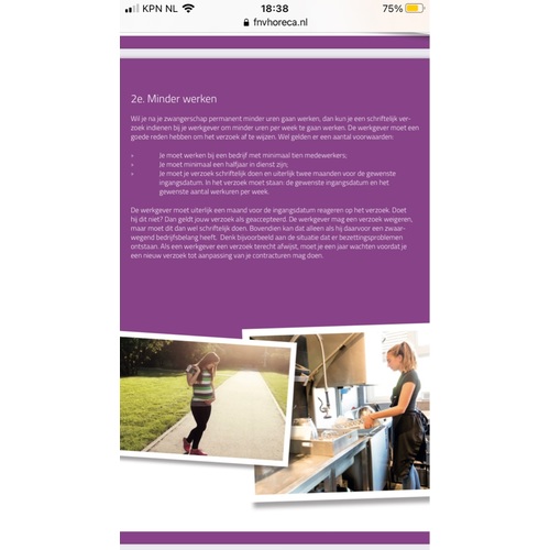 Ik werk in de horeca en vanuit de horeca cao was een heel fijn document waarin stond wat je rechten zijn. Het is volgens mij vrij normaal dat je na je verlof niet fulltime terug komt 🙈 een werkgever mag je verzoek tot minder uren alleen afwijzen als er zwaar wegende redenen zijn. Bijv. dat het bedrijf zonder jou en je uren niet meer zou kunnen draaien. Heb t documentje bijgevoegd.