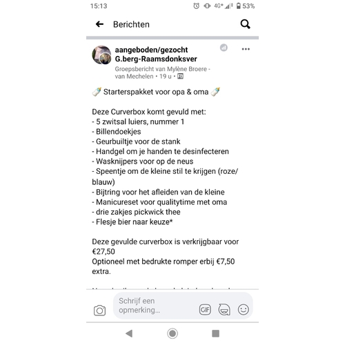 Wij hebben een pakket gemaakt net als dit pakket. Alleen dan voor oma en aangepast aan mijn moeder en zijn stiefmoeder.