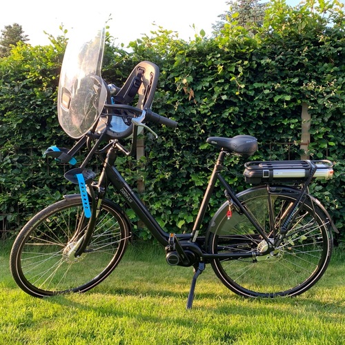batavus e ways, met upgrade motor, wonen op een van de weinige bergen/heuveltjes van Nederland, dan is wat extra ondersteuning wel prettig om de heuvel op te komen elke dag met 2 kids.