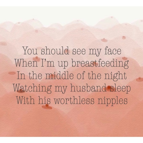 Geen quote, maar wel een typisch gevalletje van moederschap... er na een halve dag achter komen dat je je jurk achterstevoren aan hebt... dat krijg je met al die borst voedingen. Jurk uit, jurk aan, jurk uit.. valt me nog mee dat hij niet binnenstebuiten zat 🤣