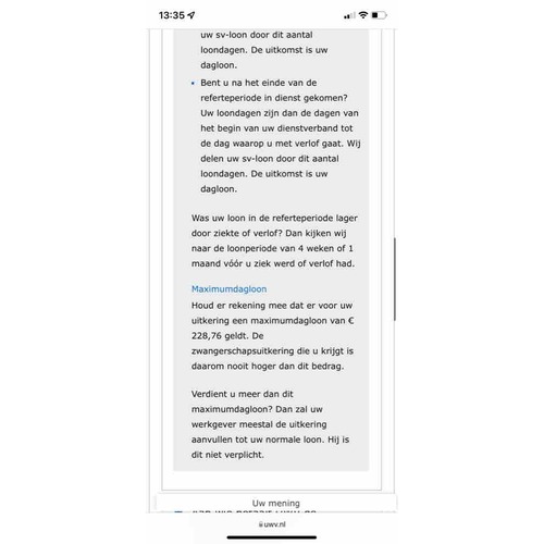 Fijn dat je gewoon doorbetaald kreeg. Ik heb eerlijkgezegd ook nog niet eerder een vrouw gehoord over dat zij tijdens haar verlof minder kreeg. Daarom vind ik het ook zo vreemd. Heb het bij mijn werkgever al nagevraagd, en zij zeggen dat ze niets aanvullen boven wat het UWV vergoedt. Wat vreemd is, omdat ik van een andere vrouwelijke collega die ook boven die UWV grens zit begreep dat zij tijdens haar zwangerschapsverlof haar reguliere salaris ontving. Ik ben benieuwd hoe het afloopt.