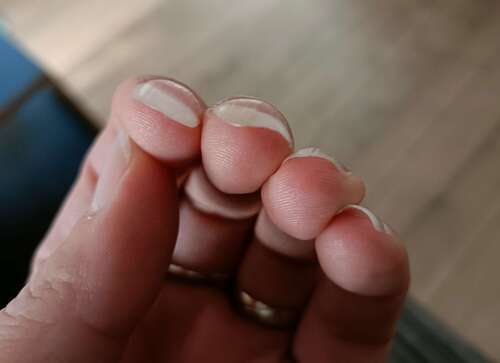 Ze lopen bij mij trouwens allebei aan de kant van de duim schuin af.