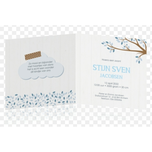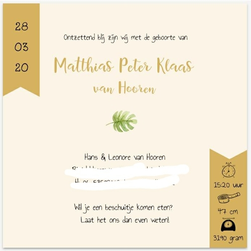 Wij ook! Roepnaam op voorkant en in het groot op de binnenkant. Daaronder 2e en 3e naam en achternaam