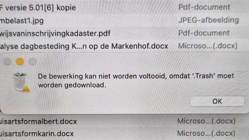 Ik kan ze niet naar de prullenbak verplaatsen, maar .trash is niet iets wat ik kan vinden om te downloaden?
