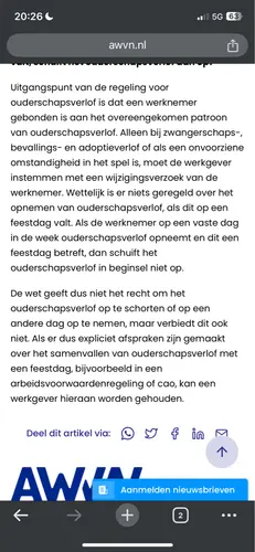 Vgm bedoel je als je bv normaal iedere woensdag ouderschapsverlof hebt en volgende week is het kerst dat je die dan kwijt bent. Er is in de wet nog geen regeling daarvoor dus in principe mag de werkgever zeggen dat het telt als onbetaald verlof. Staat er niks in je cao? Anders kun je met de werkgever kijken hoe zij erover denken. Als ik bv zo een week vrij neem en op woensdag ook ouderschapsverlof heb vraag je alleen voor ma, di, do en vr verlof. Je kunt vragen of je het onbetaald verlof tijdelijk mag stopzetten voor die week en erna weer hervatten..
