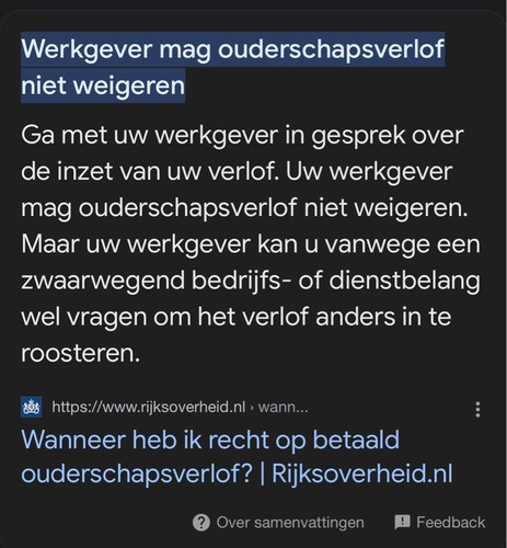 https://www.rijksoverheid.nl/onderwerpen/ouderschapsverlof/vraag-en-antwoord/wanneer-heb-ik-recht-op-betaald-ouderschapsverlof#:~:text=Werkgever%20mag%20ouderschapsverlof%20niet%20weigeren,verlof%20anders%20in%20te%20roosteren.