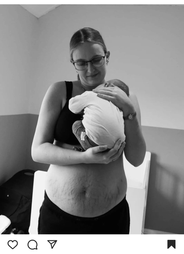 Mijn vel is na de eerste zwangerschap los gebleven en het is nu nog losser. Dat vind ik wel moeilijk want zelfs met een beetje vet hangt mijn buikje. Maar ik probeer het echt te omarmen want ik heb er twee prachtige jongetjes aan overgehouden ❤️