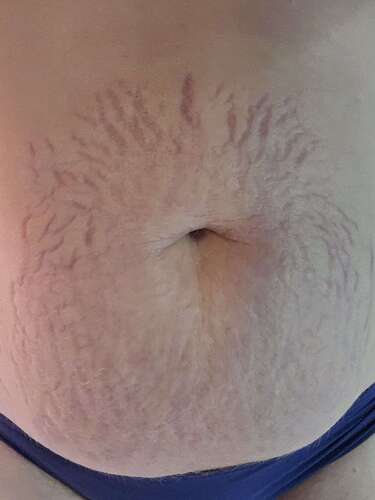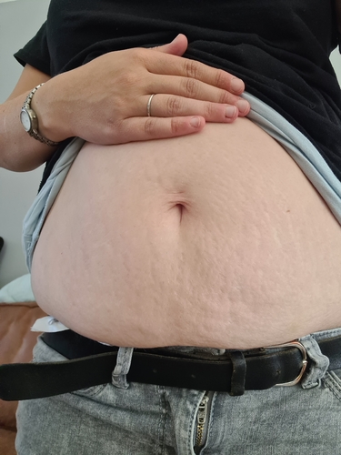 Zo fijn dat je dit deelt 🫶🏻 hier een foto van mijn buik. Ik lig op mijn zij (lig met zoontje op bed haha) dus het ziet er een beetje gek uit misschien. Maar ik heb ook streepjes en nog een zwangerschaps streep. Ben inmiddels drie maanden geleden bevallen.