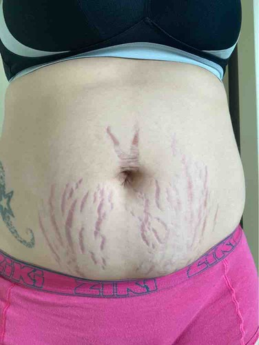 Zelf ben ik heel erg veranderd, alles is slap en hangt en overal striae. Mijn buik voelt helemaal geribbeld en zit onder de strepen.