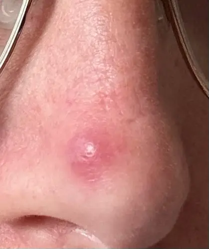 Hoi, Sinds februari heb ik deze rode bobbel op mijn neus. Ik dacht eerst een puist want ik ben momenteel zwanger van mijn 2de kindje maar hij zit er nog steeds. Doet ook geen pijn. Iemand die weet wat het kan zijn?