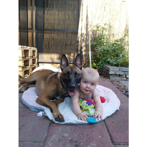 Denk dat het zalig is om ze samen te zien opgroeien, maar ik heb zoveel werk gestoken in m’n puppy manieren aanleren, daar zou ik geen baby tegelijkertijd mee willen combineren.