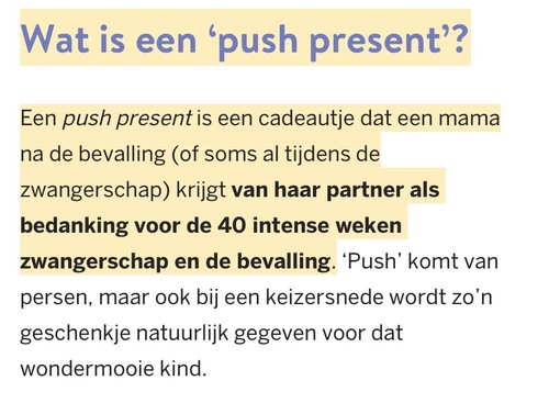 In België noemen we dit “baargoud” 😂 omdat het meestal een juweeltje is die gegeven wordt (denk aan een halsketting met naam, borstvoedingsjuweel, …) Ik heb het balletje meerder keren opgegooid bij mijn man (ik wou zo graag een halsketting met mijn zoontje zijn naam op) maar mijn man heeft de hint niet gesnapt (of bewust genegeerd hem kennende) 😉 ik zal de halsketting dan wel zelf kopen denk ik