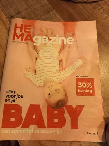 dit was het hema foldertje met eigenlijk alleen maar baby spullen . En er stond echt tussen de spenen nog een vibrator.