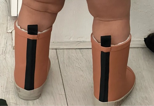 Ben draagt de laarsjes van H&M met veel plezier. Zijn korte laarsjes. Hij heeft laarsjes maat 20/21 en schoenmaat 22/23. Hij is nu bijna 16 maanden en pakt ze zelf uit het schoenenrek en probeert ze zelfs zelf aan te trekken. Dit deed hij tot verkort ook met zijn schoentjes dus ik vrees dat zijn schoentjes inmiddels te klein worden 😒.
