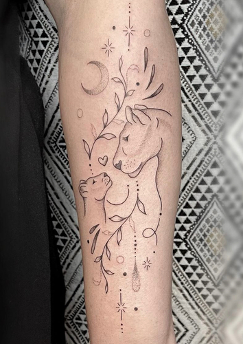 Een leeuwenwelp welke staat voor mijn dochter. Mijn man gaf haar altijd aan op de manier waarop Simba van the lion King tentoon werd gesteld. Maar om nou Simba op de arm te hebben vond ik ook maar zo zo.. dus werd het een welpje.