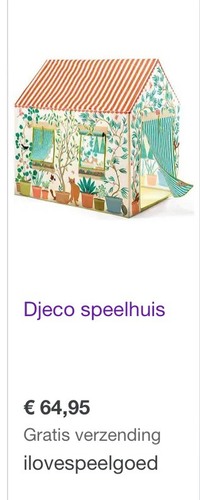 Wij hebben het speelhuis van Djeco. Niet heel goedkoop en geen tipi 馃槉 maar ...