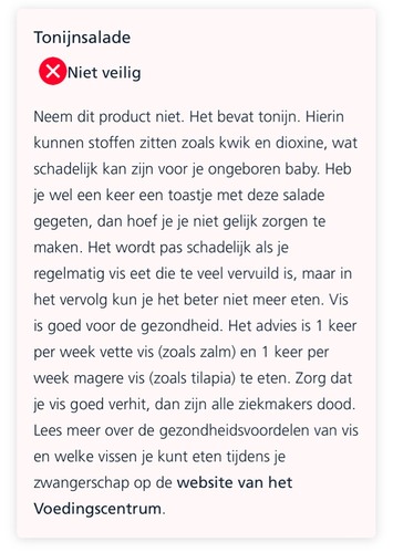 Misschien even de ZwangerHap app downloaden. Als je daar zoekt op tonijnsal ...
