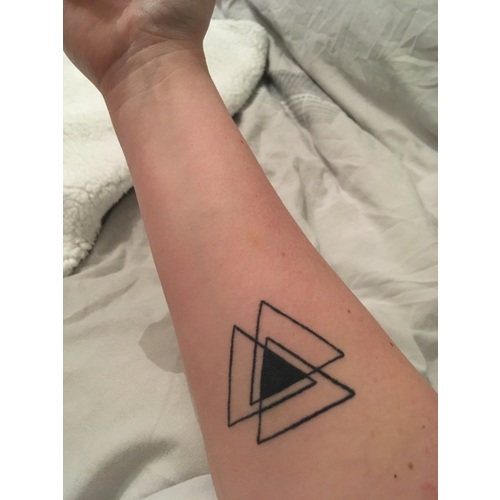 Leuk idee! Ik heb niks met een handschrift maar wel echt een betekenis : 1 driehoek staat voor mijn man, 1 voor mij en 1 voor mijn dochter. Alle 3 zijn we een individu maar toch altijd met elkaar verbonden, daar staat het zwarte driehoekje voor.