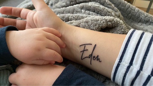 Ik heb de naam van mijn zoon op mn pols in lettertype van geboortekaartje. De naam van nr 2 komt er binnenkort naast.