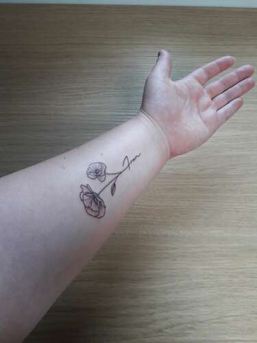 Ik heb een tattoo met de geboortebloemen van de kids en die van mijn moeder.