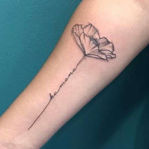 Ik ga een klaproos (geboortebloem van de maand augustus) laten zetten met de naam in het steeltje verwerkt.
