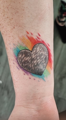 Vingerafdruk van mijn eerste zoontje in het hartje en de regenboogkleuren omdat het een regenboogbaby is 🌈🩵