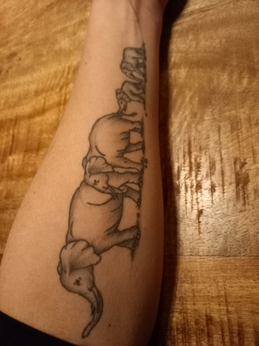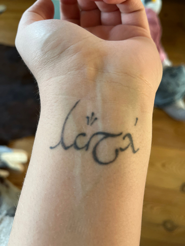Eerste betekenis van de naam van onze dochter, 2e betekenis van de 2e naam van ons zoontje en het teken van Sterk erin verwerkt ivm alles wat hij op zijn jonge leeftijd mee maakt en heeft gemaakt.. en eentje van nu nog ons 4 thuis..