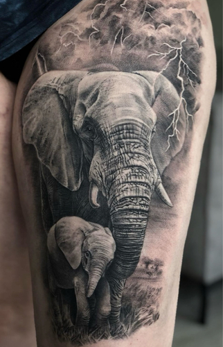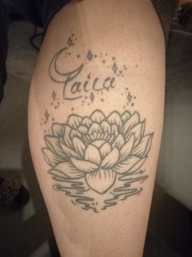 Ik heb deze op mijn bovenbeen laten zetten voor ons zoontje. Zijn initialen zijn verwerkt in de bliksem