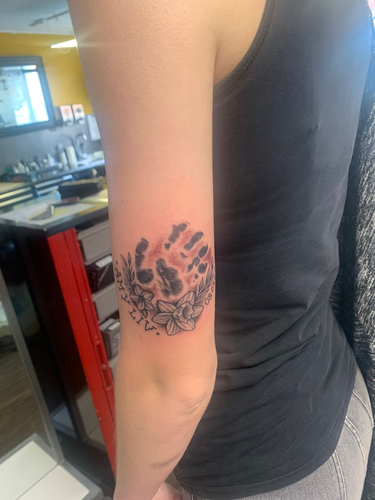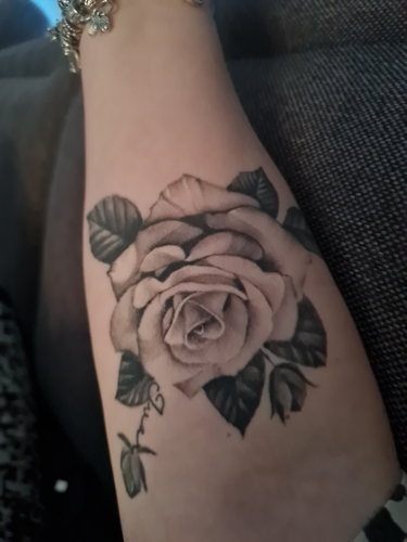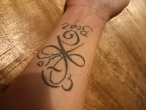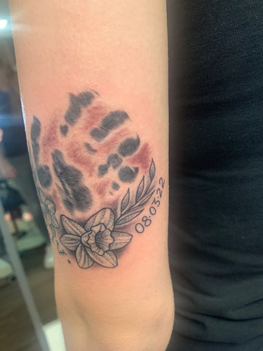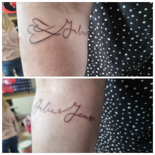 Ik heb deze op mijn bovenbeen laten zetten voor ons zoontje. Zijn initialen ...