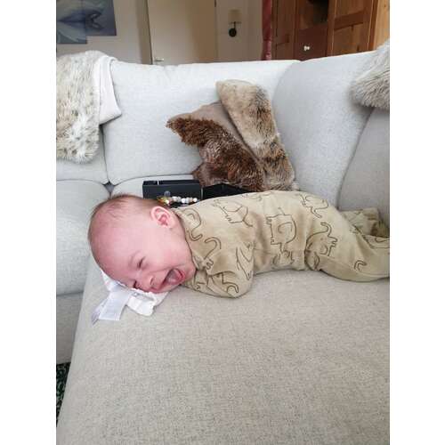 Heerlijk aan het genieten van tummy time op de bank🥰 (op de foto 10 wkn)