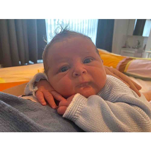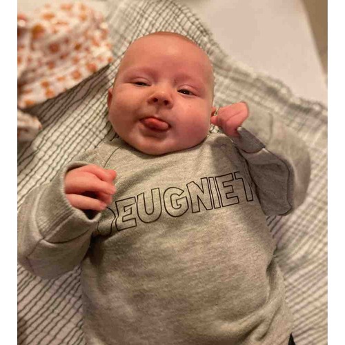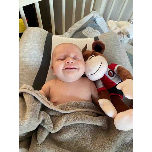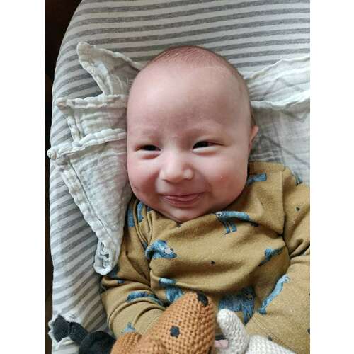 Hier was hij net een maandje oud in augustus. Hij lachte helemaal in een deuk omdat zijn knuffel naast hem lag🥰🥰❤️❤️
