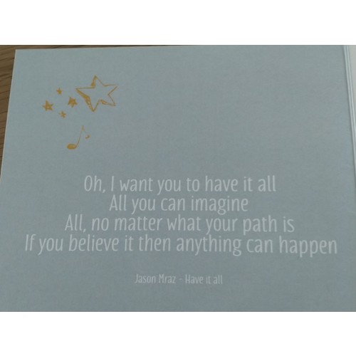 Wij hebben gekozen voor een stukje uit een liedje van Jason Mraz. Ik hoorde het liedje tijdens mijn zwangerschap een aantal keer op de radio en was iedere keer in tranen. Vond en vind te tekst zo ontzettend mooi 💙