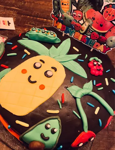 Vorig jaar was dat dancing fruits bij de eerste verjaardag van onze dochter.
