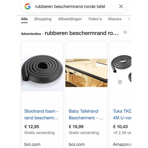 Geen ronde tafel hier. Maar heel eerlijk hij is hier nog nooit tegen de tafel gevallen. Niet eens in de buurt town hij begon met staan was het bij de tafel juist het stabielst. Je kan het altijd proberen maar ik zou je er niet te druk over maken