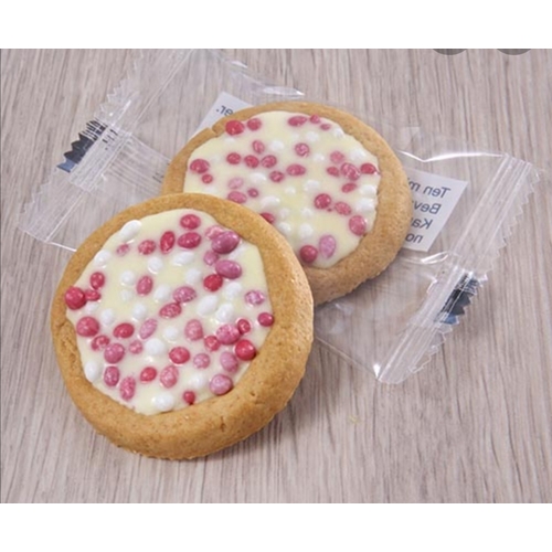 Wij hebben haar laten trakteren op deze koekjes in de vorm van beschuit met muisjes. Ze zijn echt heeerlijk! 2 stuks leuk in een zakje met lintje verpakt.