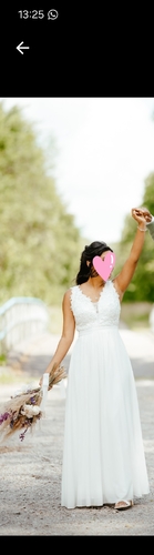 Ik heb toen online een jurk besteld bij JJsHouse. Vanwege de zwangerschap een model gekozen die sowieso ruim viel om de buik. Kort van tevoren heb ik de zijnaden van het bovenste stukje nog even laten verstellen bij een coupeuse, dat was echt een klein klusje dus niet duur