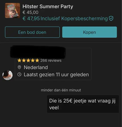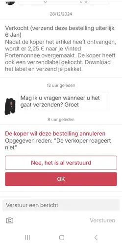 Ze vroeg na 1 dag al wanneer je zou verzenden en annuleerde 4 uur nadat ze je een vraag had gesteld en je "niet hebt geantwoord" 😅 net of je geen leven kan hebben buiten haar bestelling om, zou haar lekker laten annuleren. Ze krijgt zelf de negatieve revieuw 😉