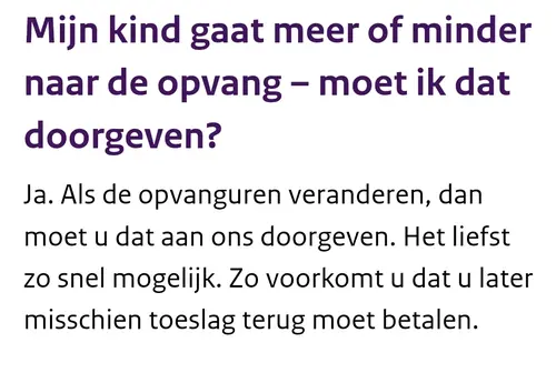 Ik denk dus dat ze die 96 uur over heel juli gerekend hebben en 1 en 2 juli eraf hebben gehaald. Terwijl 1 en 2 juli dus niet haar opvangdag zou zijn geweest. Ik heb dus wel 96 uur aan de kinderopvang betaald maar niet voor 96 uur toeslag gekregen.