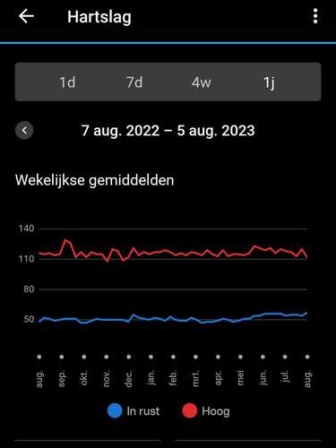 Tijdens mijn verlof lag het een stuk hoger, maar mijn activiteit was toen ook veel minder. Mijn zoontje is inmiddels twee jaar en ik train ook weer regelmatig, waardoor mijn hartslag tijdens training regelmatig boven de 160 komt. Sinds ik weer meer ben gaan trainen, is mijn hartslag in rust ook weer lager geworden.