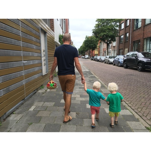 Hij brengt in de avond altijd onze dochter van 2 naar bed, inclusief boekje lezen en dag doorspreken. Hij maakt graag muziek met de kinderen of neemt ze mee wandelen of naar de speeltuin. In de avonden en weekenden verdelen we samen de taken en gunnen we elkaar rust wanneer nodig. Ik vertrouw hem volledig met de kinderen, hij weet zich prima te redden alleen als papa wanneer nodig.