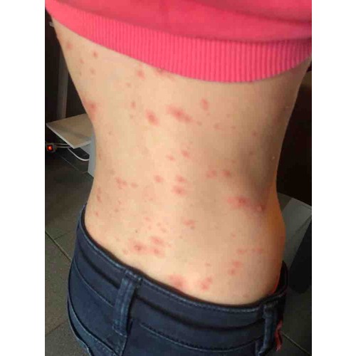 Ik zou even overleggen met de HAP als ik jou was, met name omdat het zich zo snel verspreid. Zou vervelend zijn als je het hele weekend jeuk hebt. En als je zwanger bent zeker ff overleggen ivm mogelijke waterpokken. Misschien kom je er vanaf met een antihistaminica en koelzalf of zo... maar dan weet je in ieder geval wat het is.