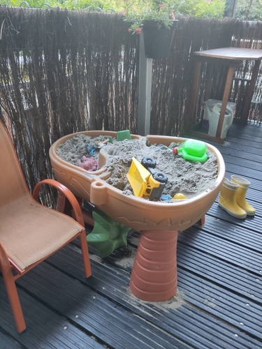 Wij hebben deze, ene deel zit zand in en andere deel water, kan ook een deksel op zodat je gewoon een tafeltje hebt. Niet achterlijk duur en toch echt wel stevig. Zaten bootjes en wat andere speeltjes bij