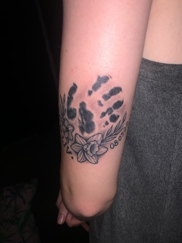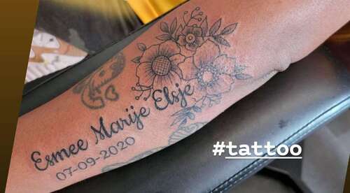 Ik heb op mijn linker zij (buik ribben) een boeket met de geboortebloem van mijn dochter die open is, en 1 geboortebloem in knop die staat voor de miskraam die we hebben meegemaakt met een sterretje erboven. Ben nu weer zwanger dus daar komt een geboortebloem bij in