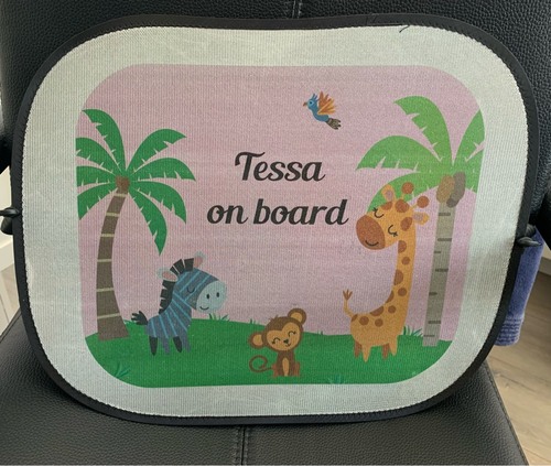 Wij hebben uiteindelijk zonneschermen gekocht die je over het hele raam spant. Weet niet precies welk merk of dat die specifiek bij het model auto hoort... Maar wel blij mee, want geen gehannes aan.
