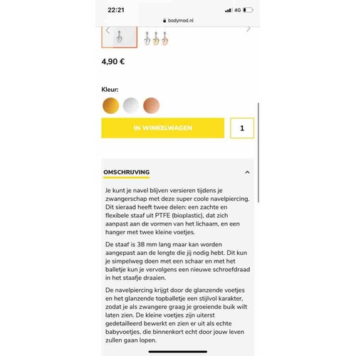 Ja ik heb dus net de piercing shop gebeld. En die zeggen dat je lijf gewoon niet tegen dat plastic kan. Hoelang je je navelpiercing ook hebt, je lijf stoot dat plastic af. Ik ben nu zoeken naar een staafje die langer is wel van ijzer