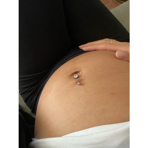 Ik heb ook een navelpiercing en draag momenteel een zwangerschaps piercing. Zelf heb ik nergens last van gehad behalve kleine momenten dat het ongemakkelijk voelden met bewegen en de huid rond de buik best strak staat met zo'n staafje. Moet ook eerlijk zeggen dat ik bang ben soms dat de piercing uitscheurd daardoor maar tot nu toe gaat het goed.