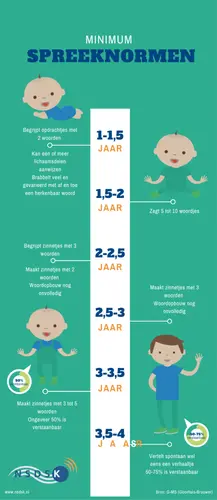 Onze oudste was qua eerste woordjes en wijzen nog later, die begon met 2 en 3 woordjes aan elkaar plakken rond de 18 maanden, maar is nu met 2,5 jaar verbaal juist idioot ver vooruit.