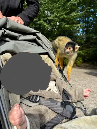 Mijn enige tip zou zijn om bij de doodshoofdaapjes (meteen in het begin van het park) je kind even op te tillen en uit de kinderwagen te halen. De doodshoofdaapjes komen graag in de buggy's (etensresten). De andere losloopgebieden zijn niet 'spannend'. Die apen negeren eigenlijk bijna iedereen.