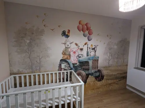 Wij hebben op één muur foto behang gedaan, ook met boerderij thema