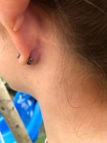 Ik zou de oorbel eruit halen. Mijn dochter had dit ook en ben gelijk naar d ...